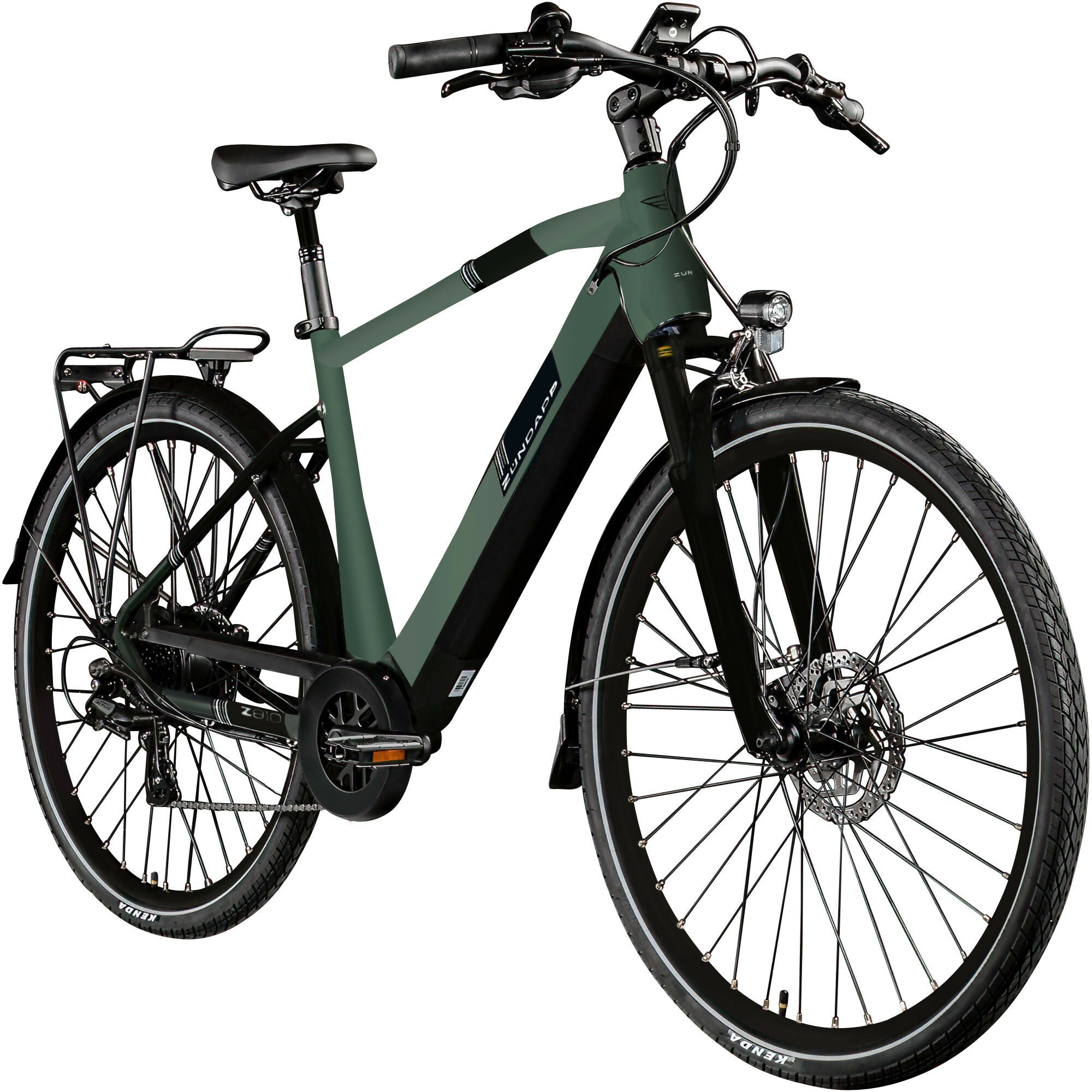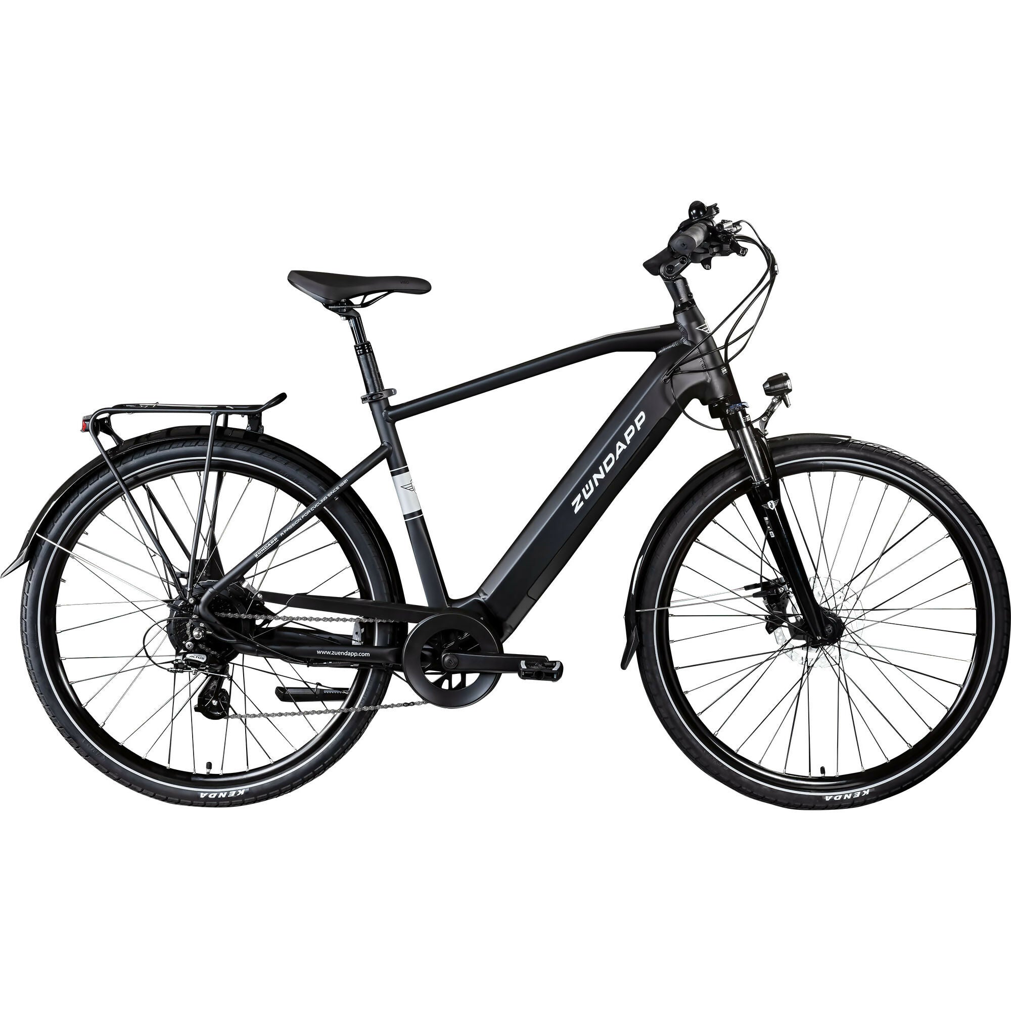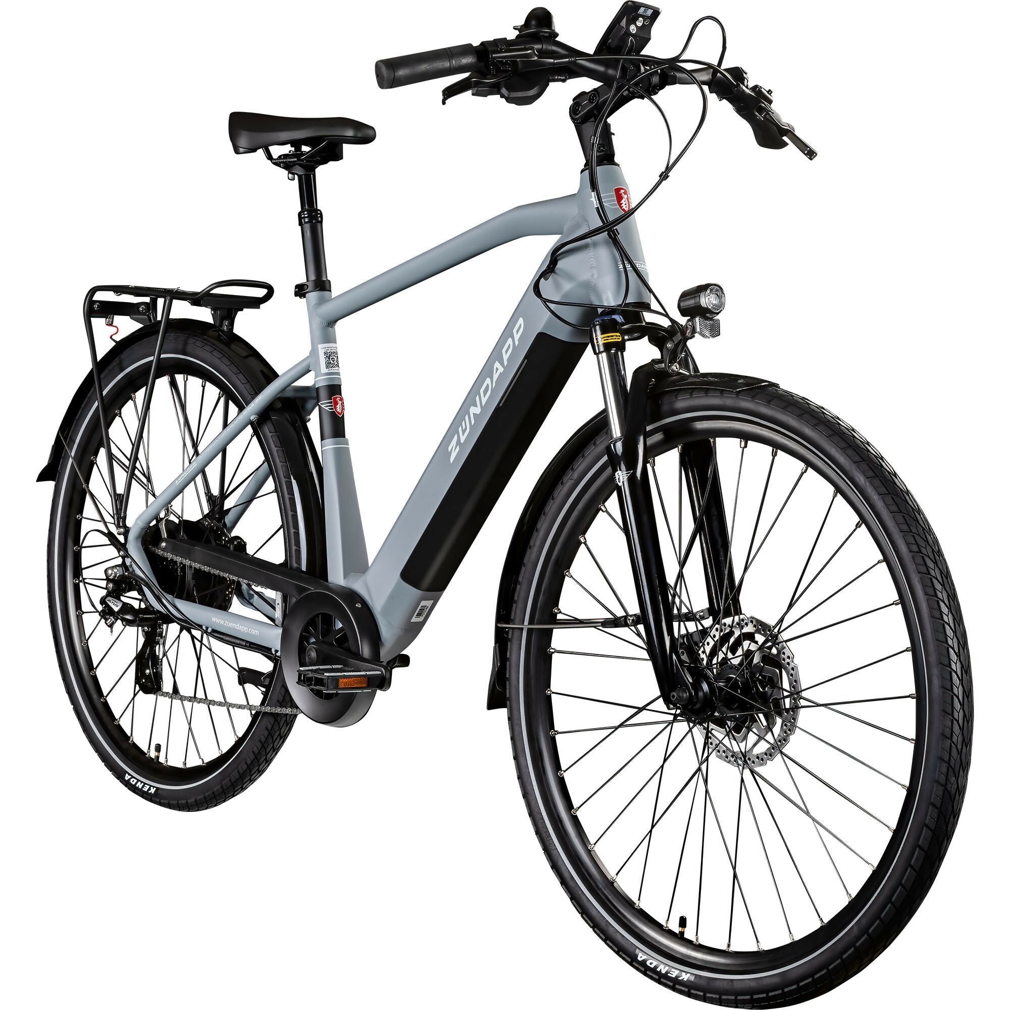 Das Herren Trekkingrad E Bike Zündapp Z810 mit Nabenmotor ist ein komfortables Pedelec mit 8 Gängen für Fahrer ab 175 cm Körpergröße, mit 550 Wh Fahrradakku